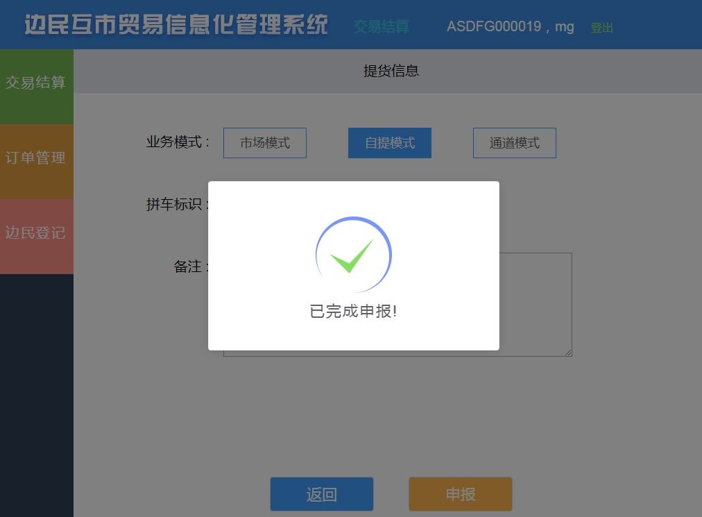 海關(guān)總署監(jiān)管司、科技司于2019年5月28日正式開(kāi)始推行總署互市統(tǒng)一版系統(tǒng)的試運(yùn)行工作,航通反應(yīng)迅速,第一時(shí)間在滿洲里中俄邊民互市貿(mào)易區(qū)上線了航通運(yùn)營(yíng)管理平臺(tái),并依照海關(guān)總署的聯(lián)調(diào)測(cè)試要求,成為業(yè)內(nèi)首家完成聯(lián)調(diào)測(cè)試且唯一實(shí)現(xiàn)與總署互市統(tǒng)一版系統(tǒng)成功對(duì)接的企業(yè)。